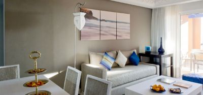 Junior Suite je určen pro ubytování dvou osob a případně jednoho dítěte na sofa. I s obývací částí zaujímá plochu 62 m2 a skýtá výhled na oceán a bazén. Příjemný moderní design, který plážovou atmosféru dokonale podtrhuje, doplňuje kvalitní vybavení včetně bezplatného wifi připojení a přehrávače DVD. Některé pokoje tohoto typu jsou upraveny pro handicapované.