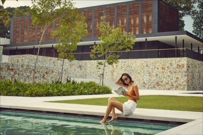 Ubytování je ukryto stranou od 1,5 kilometrové pláže, na které naleznete jen ohniště a houpačku zavěšenou na letitém stromu. Do areálu vede nenápadná branka, za kterou už čeká Váš komorník a svět plný zvuků džungle, zpěvu ptáků, šumící zeleně a velkorysého pohodlí 42 Junior Suitů a víceložnicových apartmá s vlastními bazény. Nejexkluzivnější vila má 1500 metrů čtverečních, 27 metrový bazén, vlastní lázně, letní kino i ohniště. Každý člen rodiny si v tomto nebi najde svůj kousek ráje: malé i větší děti zaujme ekolaboratoř, umělecké studio, tenisová akademie, lukostřelba, vyjížďky na kolech či malajské padel kurty, kterou jsou kombinací squashe a tenisu. Dámy butikové obchůdky, lázně u leknínového jezírka s diagnostikou těla, vyhlášenou pedikúrou, manikúrou a hodinami jógy. Pány naprosto bezkonkureční hloubkové rybaření (nejlepší je v tomto ohledu období srpen-listopad) a 27 a 18 jamková golfová hřiště navržená Ernie Elsem u oceánu (hodiny na míru s trenérem PGA možné).