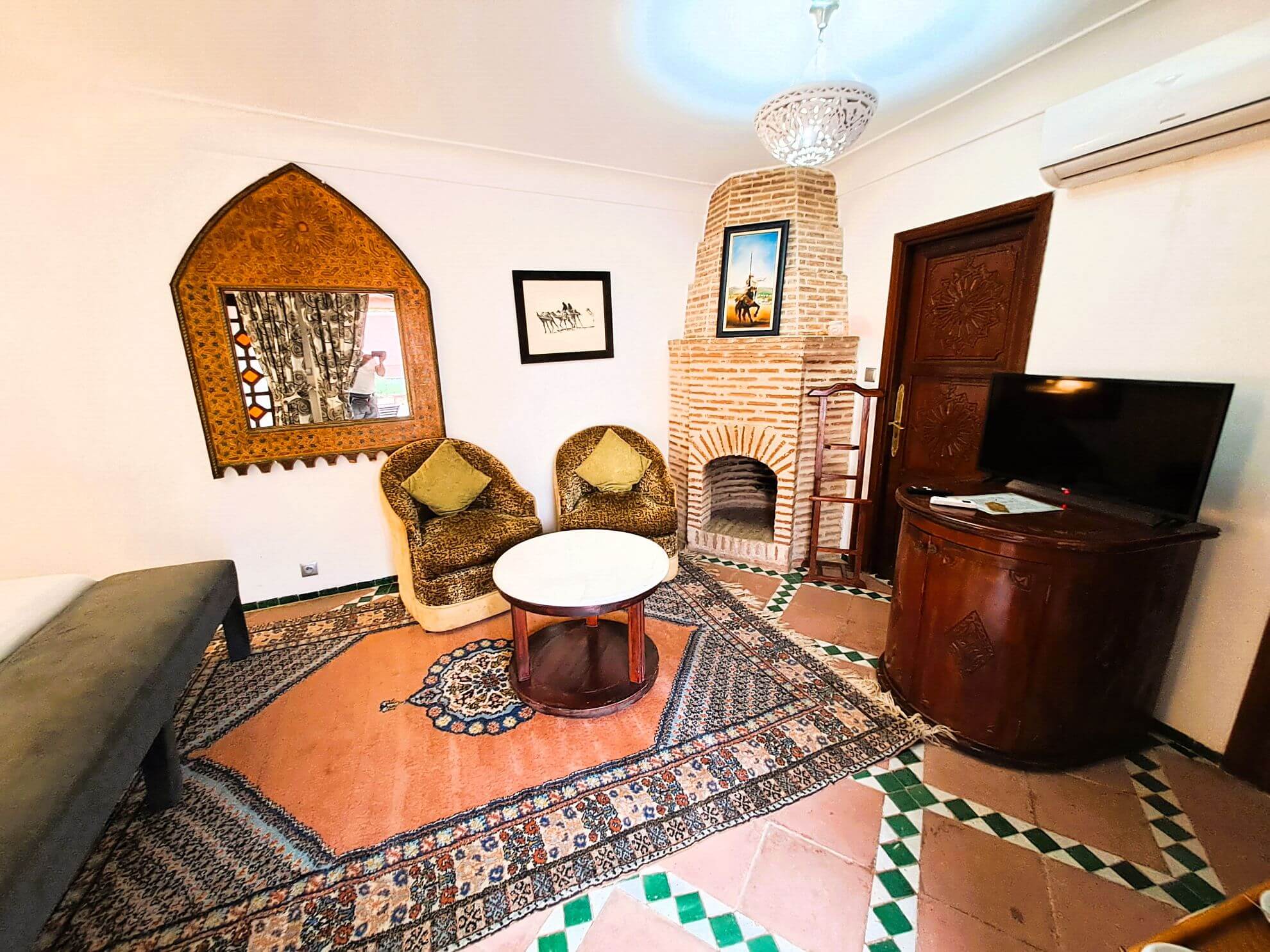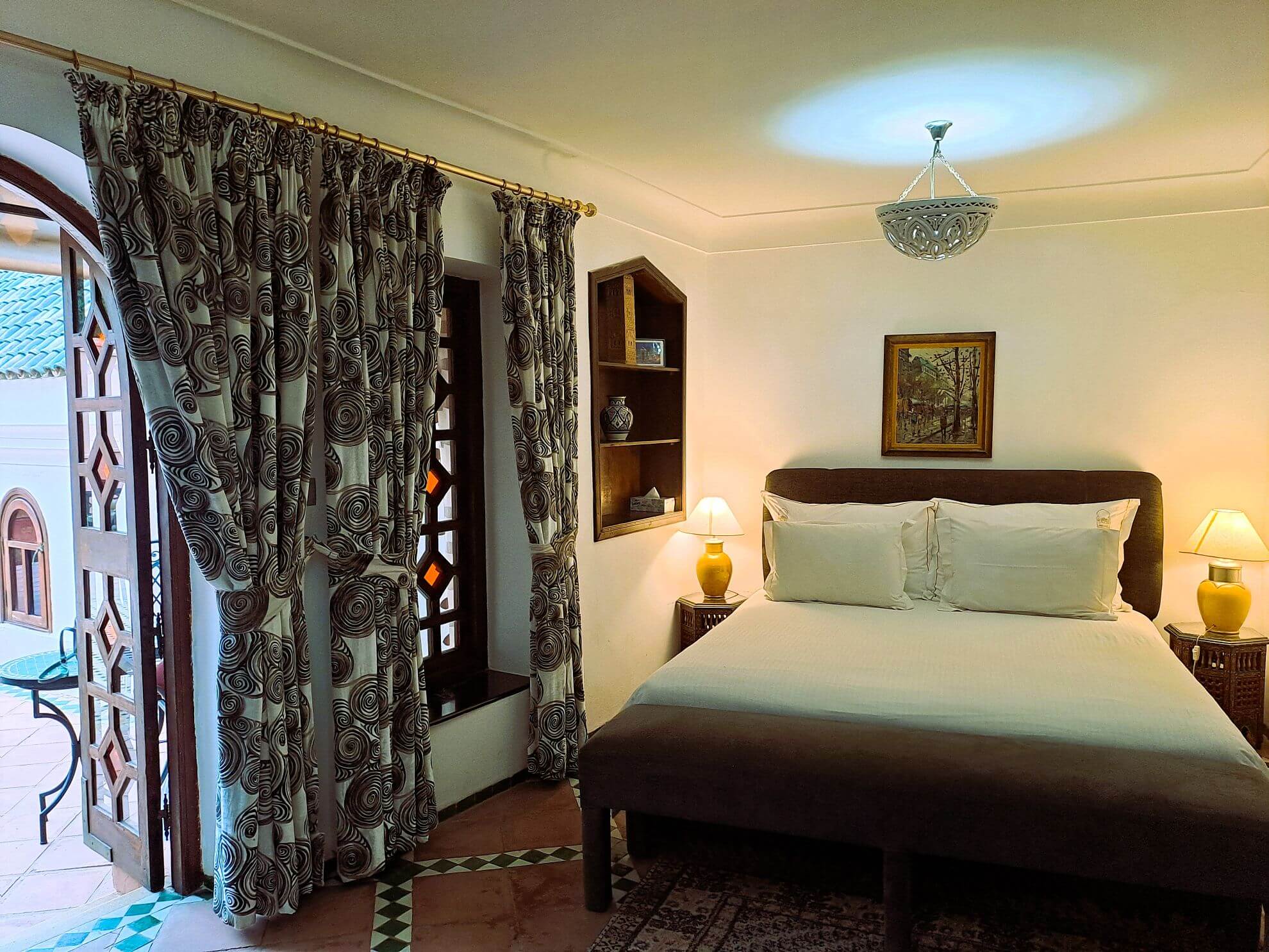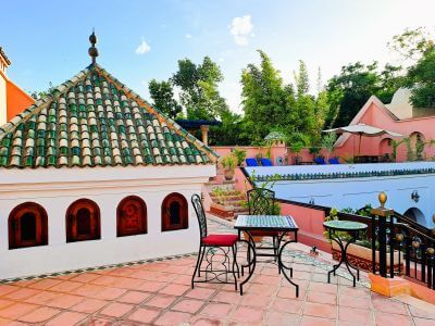 Jedno z nejkrásnějších apartmá má čelní výhled z pátia obrostlého květinami přímo na bazén a zahrady z úrovně prvního patra. Dvouúrovňové apartmá má 80 metrů čtverečních a je v něm možné ubytovat maximálně 3 osoby, z toho dítě do 11,99 let na pohodlné posteli v samostatném prostoru. Ložnice rodičů přechází v obývací pokoj s pohodlnou pohovkou a minibarem s nealko nápoji. Design apartmá je naprosto výjimečný, protože jejím centrálním prvkem je věžička zdobená arabeskami, mozaikami a barevnou vitráží. V koupelně je na rozdíl od ostatních aparmá mramorová vana. Díky svému rozložení apartmá skýtá kromě výhledu na centrální nádvoří také výhled na mešitu Kutúbija a pohoří Atlas. Hosté všech apartmá mají k dispozici nealkoholický minibar, trepky, župan, wi-fi připojení a kosmetiku Sense de Marrakech.