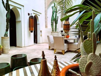 Na svém vysněném riadu si italský pár dal záležet. Patří ke komunitě riadů ve známé marakéšské čtvrti Arsat Aouzal a dům, který získali, zrestaurovali s velkou pečlivostí. Nezvolili tradiční postupy, naopak vyšli z toho, odkud sami pocházejí a kde je Marakéš. S tímto vědomím vdechli všem pokojům moderního italského ducha. Na fakt, že Maroko je v Africe, upozornili záplavou sukulentů, divoké zeleně a jemnými africkými artefakty. Přírodní materiály doplnili o jemné arabesky, najali skvělý personál a výsledek na sebe nedal dlouho čekat. Srdce hostů Dar Kandi získává servisem, omamnou vůní skořice a pomeranče v lázních, značkovou kosmetikou Les Sense de Marakech na pokojích, skvělou prezentací kulinářských výtvorů a také výbornou polohou. Nejenže si čerstvé ovoce nakoupíte doslova za rohem, ale tamtéž lze vyzkoušet tradiční arabské lázně. O kousek dál lze zamířit do muzea Dar El Bacha a tamní vyhlášené kavárny. Je příjemné na závěr dne smočit unavené nohy v osvěžujícím bazénku na střešní terase s výhledem na pohoří Atlas a přitom zhodnotit návštěvu nedaleké zahrady Secret Garden a potěšit se výsledkem nákupů v přilehlých súcích.