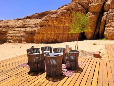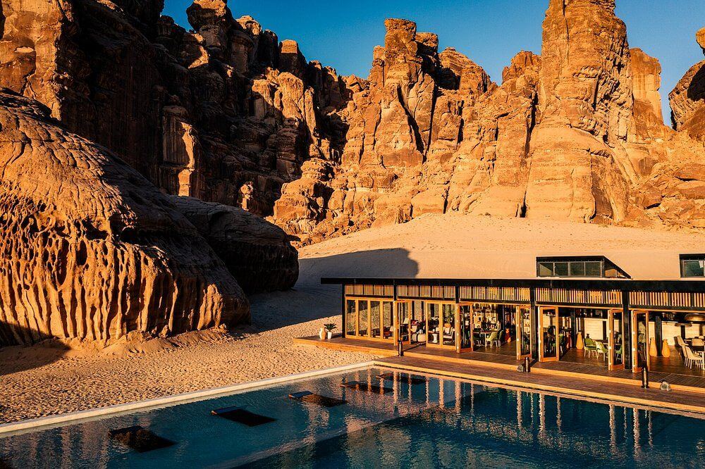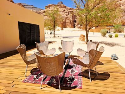 Spojení výtvarného umění, lázeňství, dobrodružství, výuky, dobrého jídla a hudby - o to se pokusil resort Our Habitas v jednom u kaňonů údolí Ašar asi 50 minut od letiště v Al Ule. Zatímco spodní část resortu tak trochu připomíná éru květinových dětí díky ocelově naleštěným karavanům a komunitním stanům s literaturou a občerstvením, část, která pomalu stoupá do kopce, je poseta vilkami řady typů, přičemž žádné z nich nechybí terasa s výhledem na dramatickou krajinu. Místa, která pokrývá plocha z obřích kamenů, se proměnila ve skalní zahradu se svébytným uměleckým pojetím a pěti instalacemi, do jejichž tvorby se hosté mohou zapojit. Horní část resortu je relaxační díky skvělým lázním a plošinám pro jógu, ale také společenská díky společnému bazénu u hlavní restauraci Tama a přilehlému nealkoholickému baru. Vyhledávanou aktivitou jsou pak obří trampolíny. Všechny části propojuje doprava na golfových vozících, a tak hosté karavanů si mohou užívat nejen "své stylové kavárny" nebo "cukrárny", ale mohou si ve stejné míře užít hlavní bazén, restauraci a další aktivity jako jejich sousedé z horní poloviny kaňonu. Naopak "horňáci" se mohou zúčastnit promítání filmů na přírodní skalní stěně v části dolní. Aktivity jsou přirozenou a bezplatnou součástí pobytu v Our Habitas, nejedná se jen o hodiny různých druhů jógy, ale také např. o kurz mixologie, uměleckých kurzů, pozorování hvězd, let balónem, zvukovou lázeň, nebo jízdy na eletrokolech. Na nich je možné zamířit nejen do staré Al Uly za nákupy, ale také do oázy, která láká už pouhým pohledem z karavanu, případně dál po cyklostezkách za dalšími zajímavostmi v okolí, k nimž patří hora Ikmah s historickými nápisy, Sloní skála či nabatejské památky v Hegře.