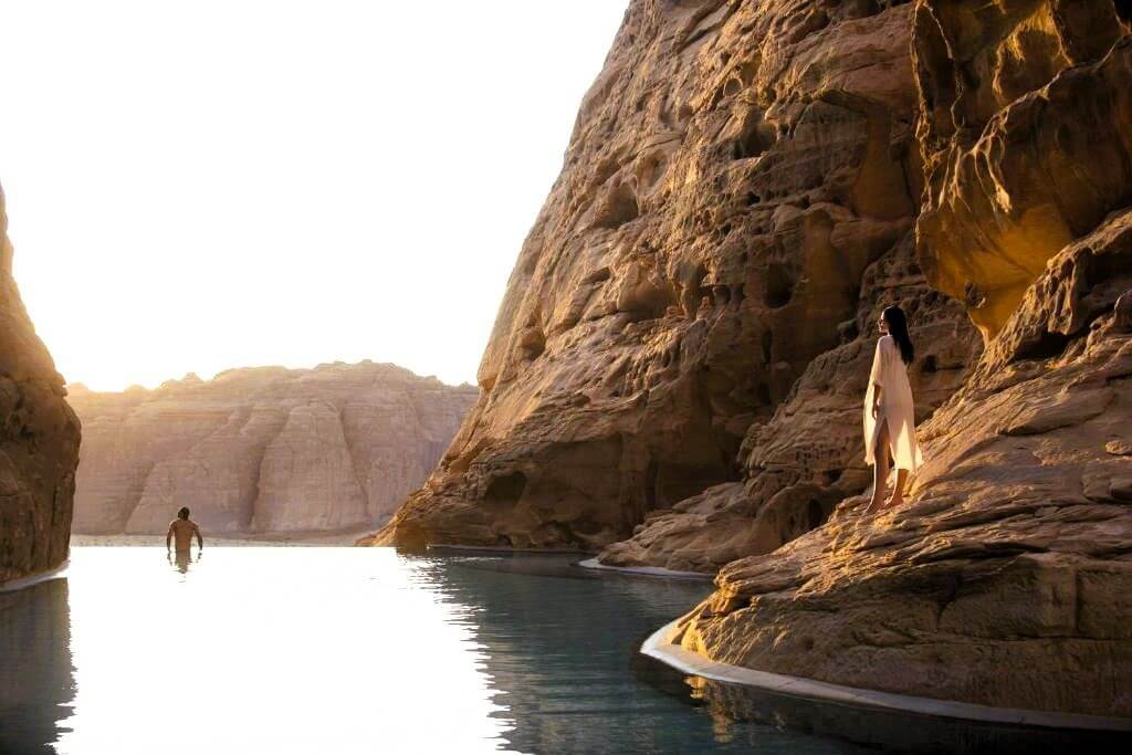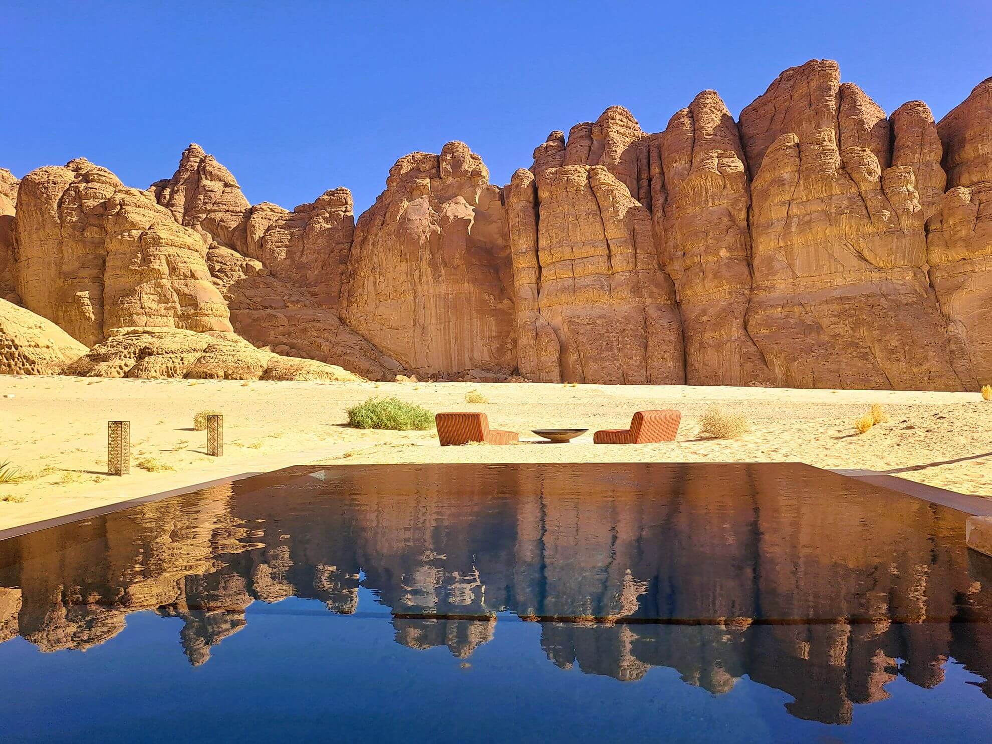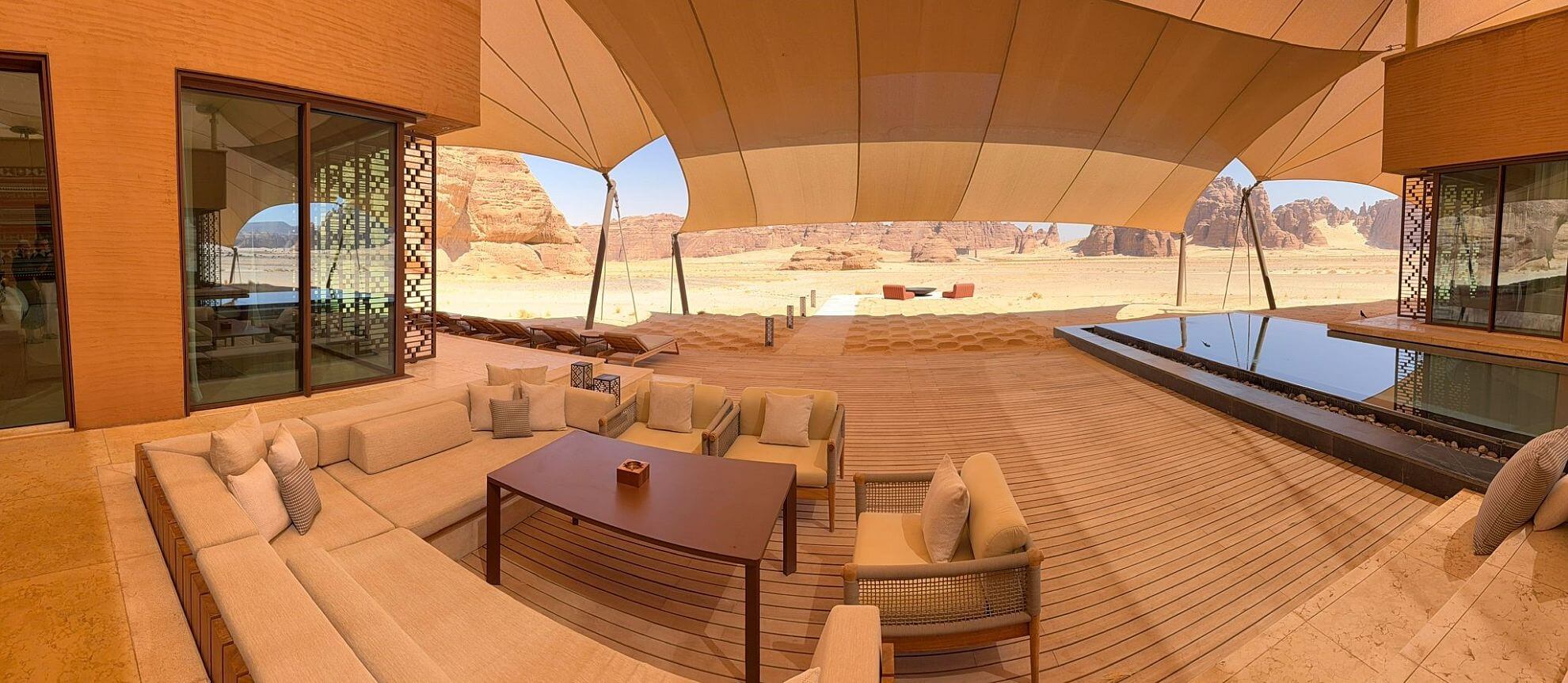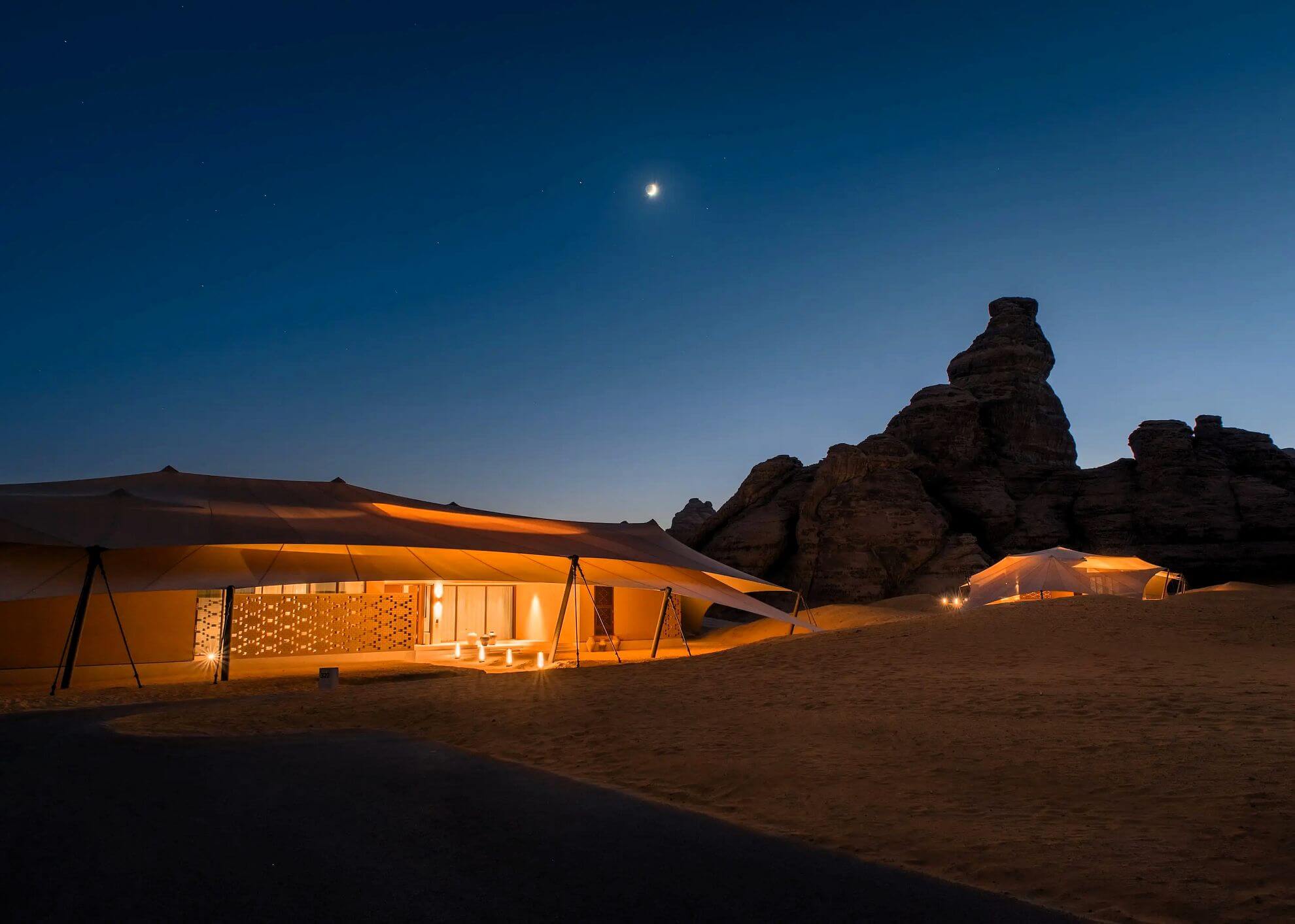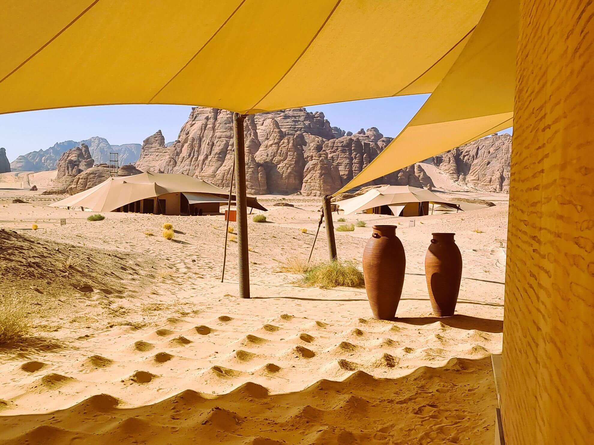 Údolí Ašar nedaleko Al Uly vypadá na první pohled při příletu stejně jako celé okolí, poušť a bohaté skalní útvary. Při příjezdu po zemi se ale začínají vynořovat střechy 47 velkolepých luxusních vil ve tvaru stanů, jejichž barva dokonale splývá s okolím, to je Banyan Tree. Architekti udělali vše proto, aby tento resort korespondoval s krajinou i historií. Na papír jim přitom bylo naservírováno celé údolí, přičemž od severní části resortu s ikonickým bazénem po recepci na konci jižním je to přes tři a půl kilometruy. Každý host se může kochat ve všudepřítomné vůni citronové trávy nekonečnou krásou skalních útvarů od ohniště či bazénu své vilky, kolem níž jsou navršeny písečné duny, což zajišťuje maximální soukromí. I proto do tohoto resortu zamířil např. slavný Ronaldo. Golfový vozík hosta dopraví k úžasnému přírodnímu kamennému bazénu mezi pískovcovými skalami (jen pro starší 16 let), k fata morgáně jménem Maraya, což je největší koncertní budova na světě složená z 9740 zrcadlových panelů, do lázní s medovými a kurkumovými procedurami i do obou skvělých restaurací. Harrat promlouvá k hostovi všemi smysly od nabídky mezze, mořských plodů po místní grilované speciality. Thajská restaurace Saffron je značkovou lodí hotelů Banyan po celém světě, její mistrovské kousky si host může zkusit uvařit během kurzů vaření.