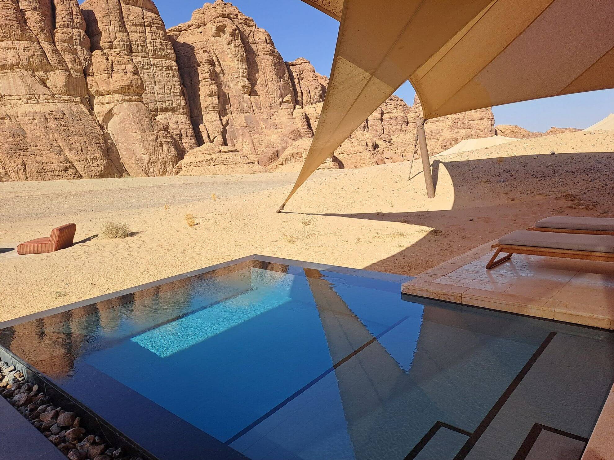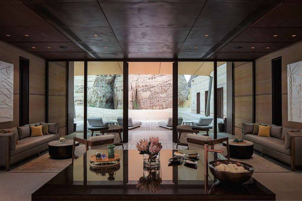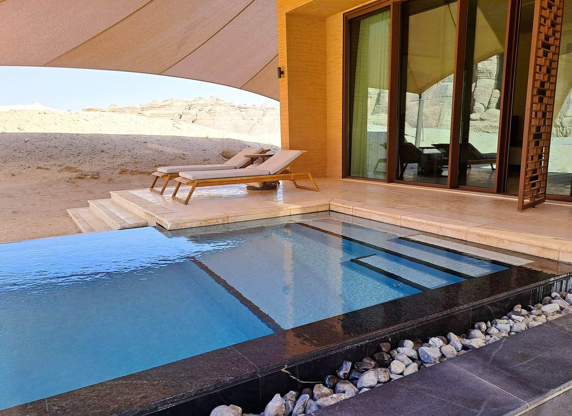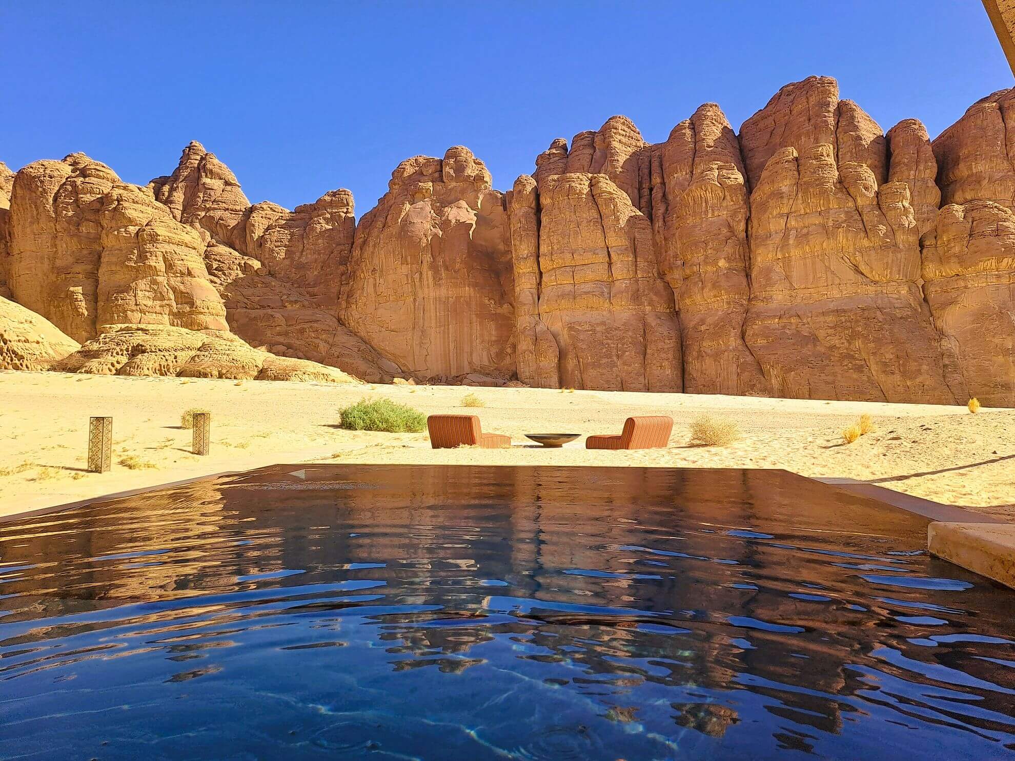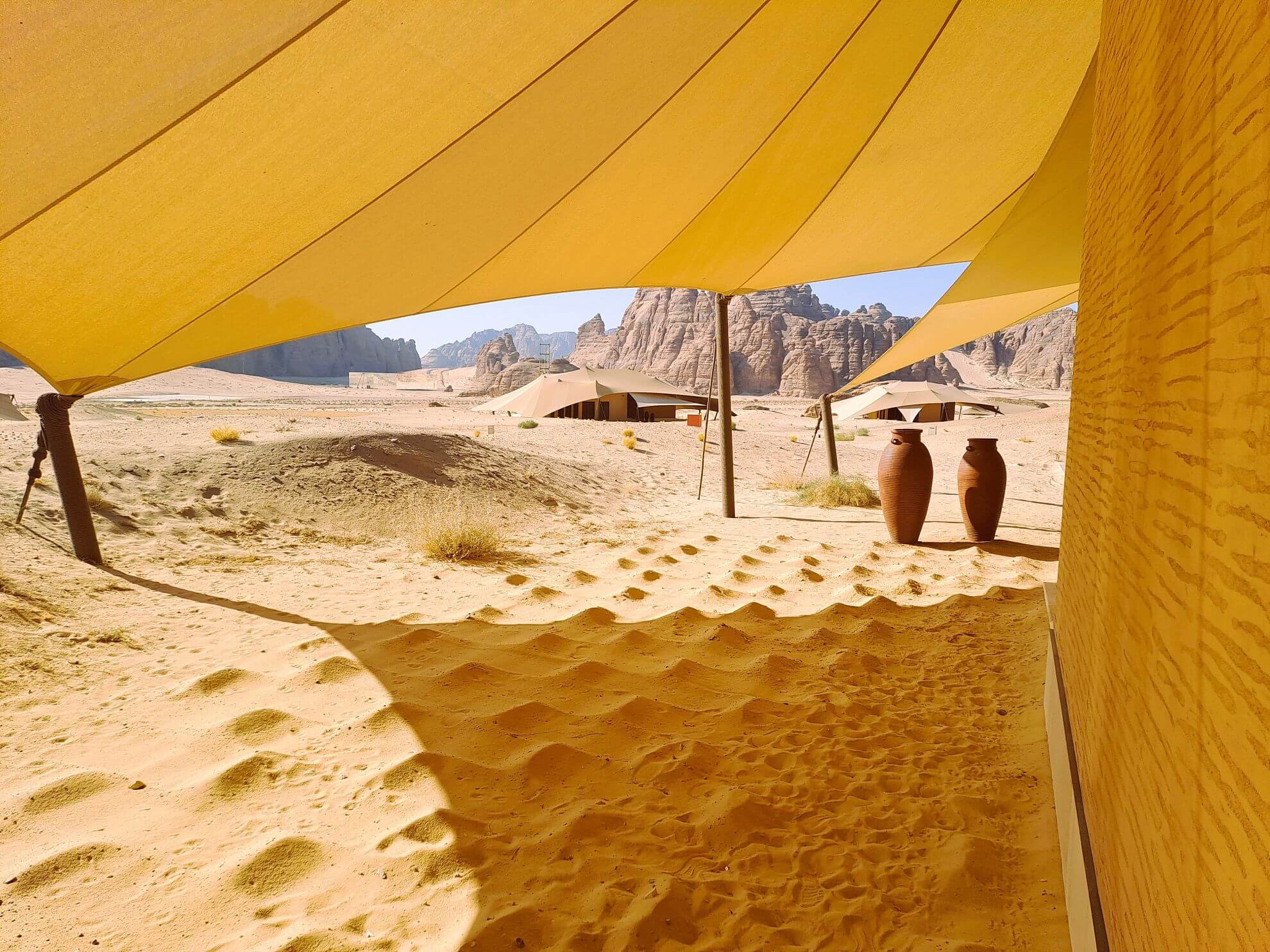 Údolí Ašar nedaleko Al Uly vypadá na první pohled při příletu stejně jako celé okolí, poušť a bohaté skalní útvary. Při příjezdu po zemi se ale začínají vynořovat střechy 47 velkolepých luxusních vil ve tvaru stanů, jejichž barva dokonale splývá s okolím, to je Banyan Tree. Architekti udělali vše proto, aby tento resort korespondoval s krajinou i historií. Na papír jim přitom bylo naservírováno celé údolí, přičemž od severní části resortu s ikonickým bazénem po recepci na konci jižním je to přes tři a půl kilometruy. Každý host se může kochat ve všudepřítomné vůni citronové trávy nekonečnou krásou skalních útvarů od ohniště či bazénu své vilky, kolem níž jsou navršeny písečné duny, což zajišťuje maximální soukromí. I proto do tohoto resortu zamířil např. slavný Ronaldo. Golfový vozík hosta dopraví k úžasnému přírodnímu kamennému bazénu mezi pískovcovými skalami (jen pro starší 16 let), k fata morgáně jménem Maraya, což je největší koncertní budova na světě složená z 9740 zrcadlových panelů, do lázní s medovými a kurkumovými procedurami i do obou skvělých restaurací. Harrat promlouvá k hostovi všemi smysly od nabídky mezze, mořských plodů po místní grilované speciality. Thajská restaurace Saffron je značkovou lodí hotelů Banyan po celém světě, její mistrovské kousky si host může zkusit uvařit během kurzů vaření.