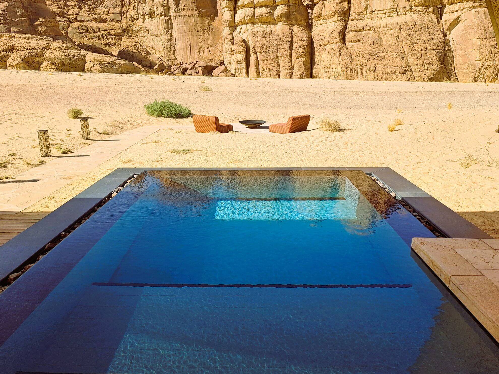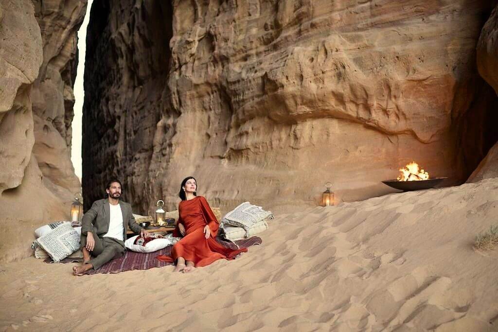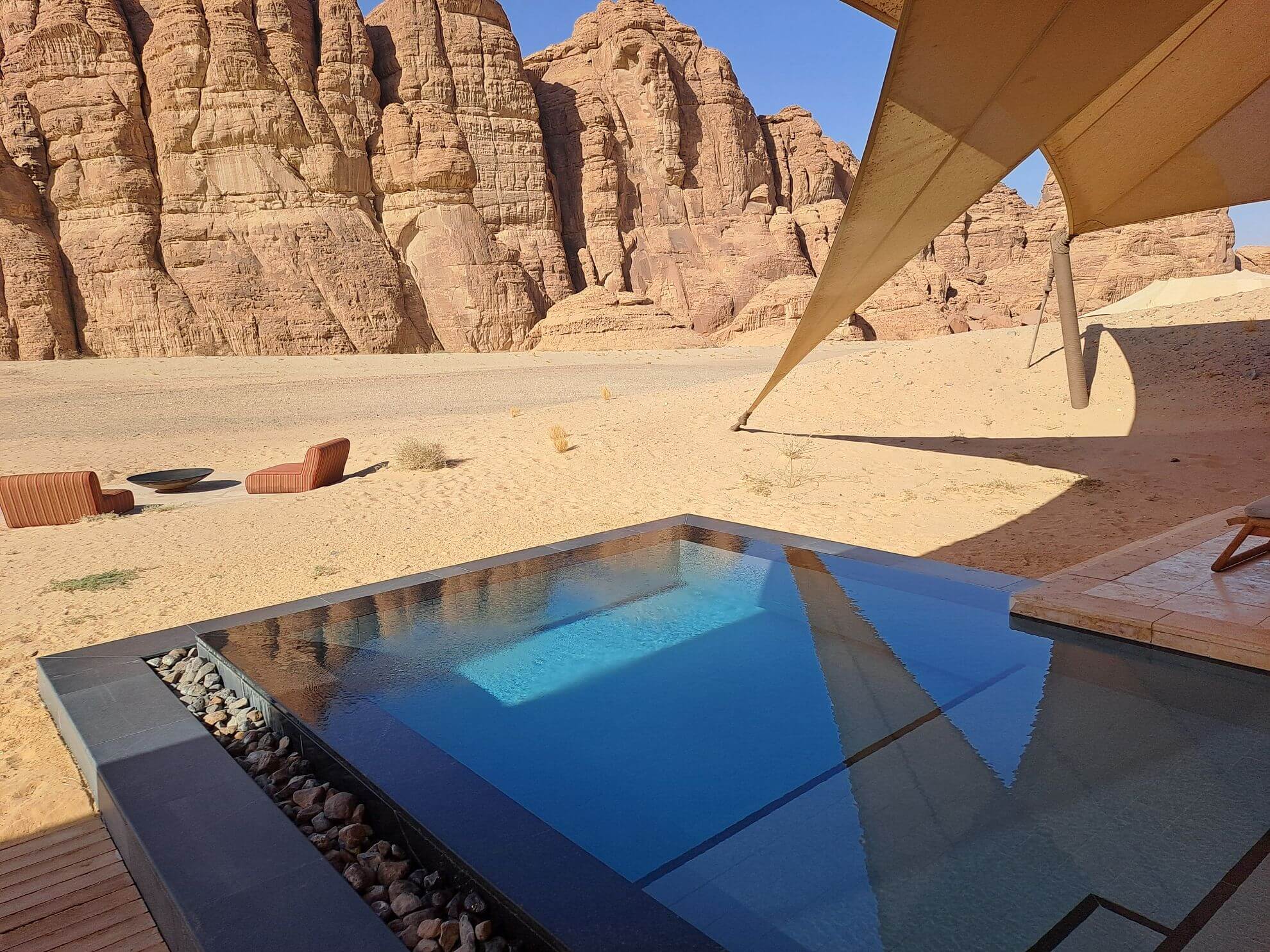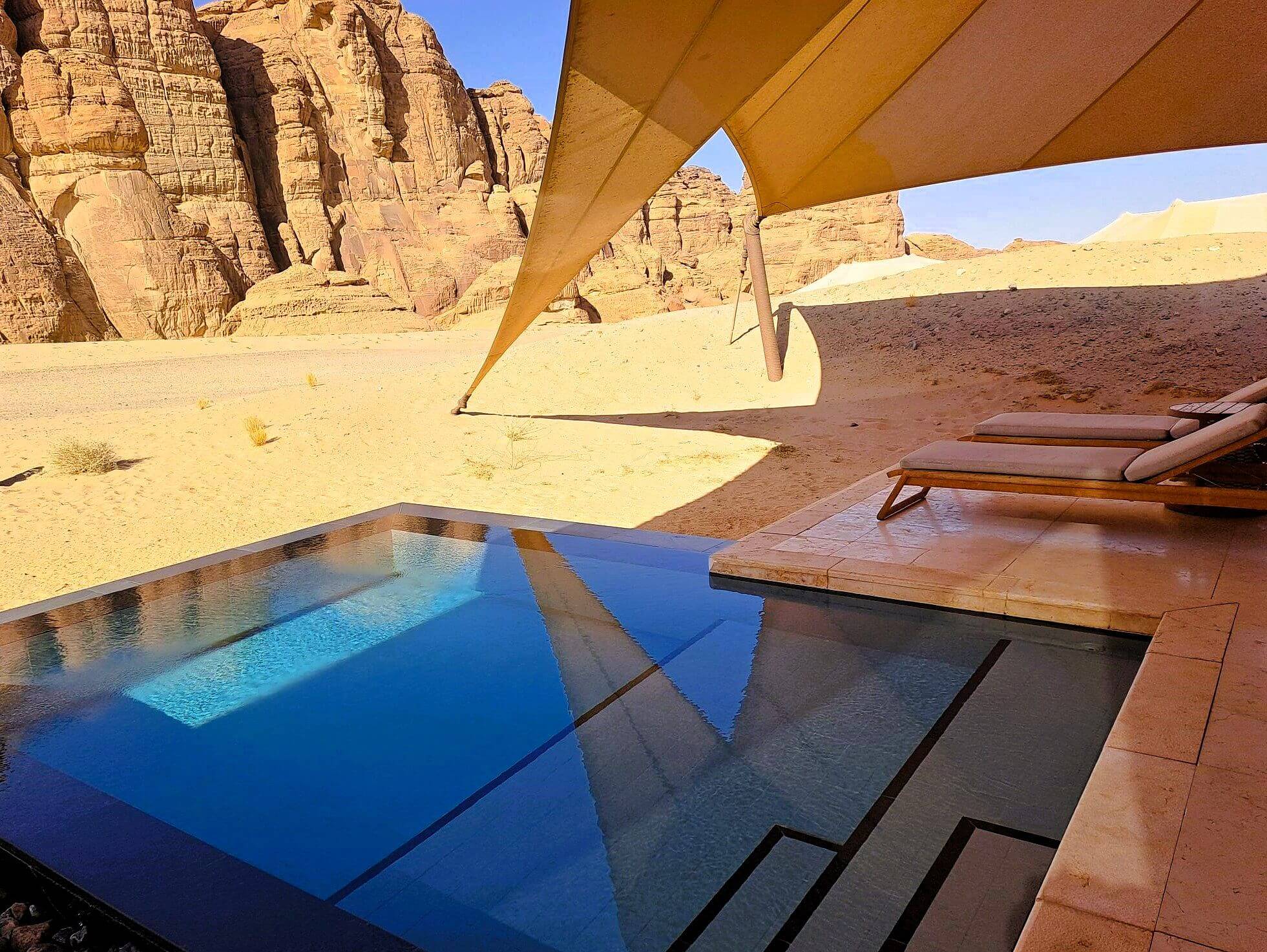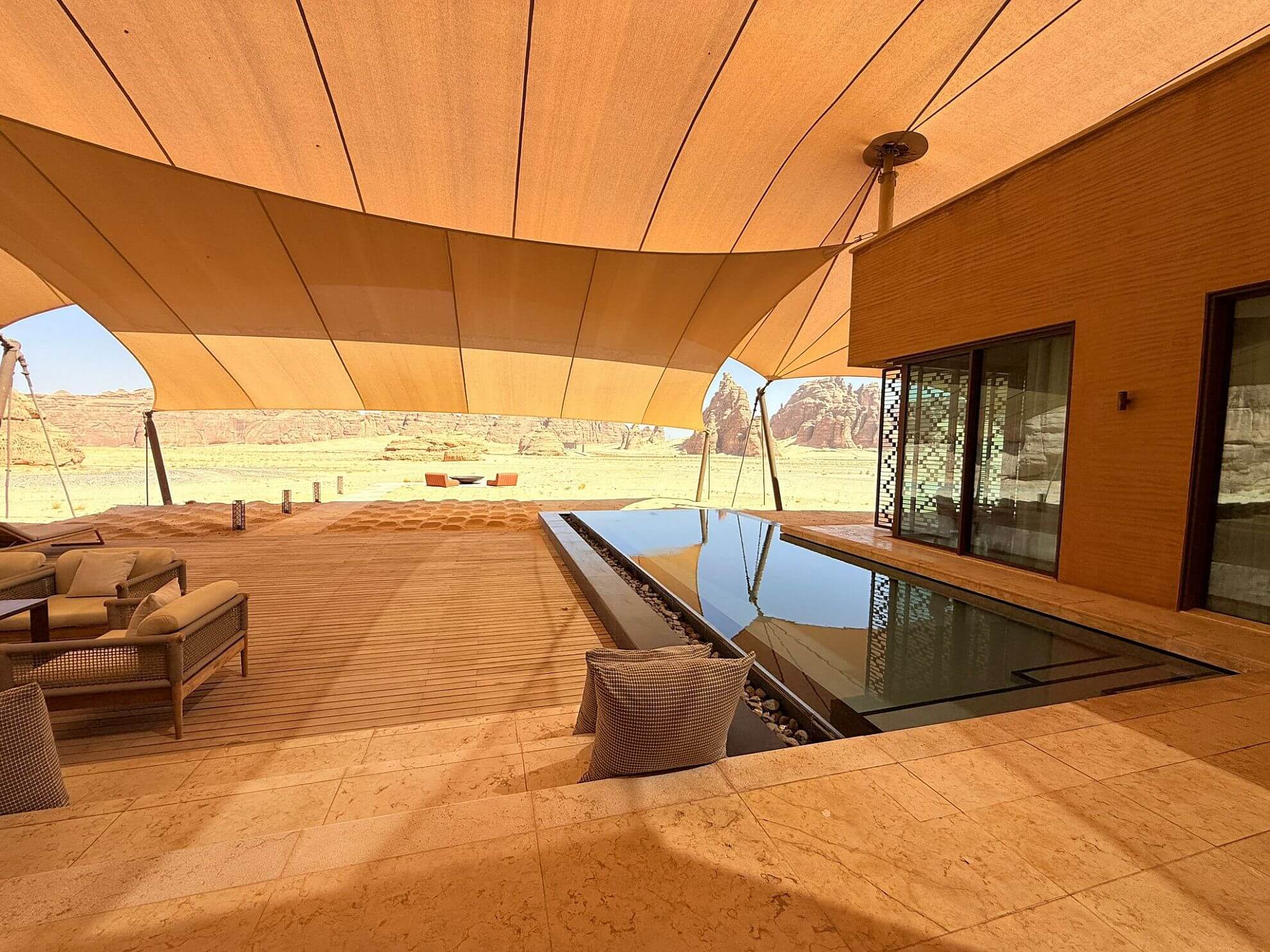 Údolí Ašar nedaleko Al Uly vypadá na první pohled při příletu stejně jako celé okolí, poušť a bohaté skalní útvary. Při příjezdu po zemi se ale začínají vynořovat střechy 47 velkolepých luxusních vil ve tvaru stanů, jejichž barva dokonale splývá s okolím, to je Banyan Tree. Architekti udělali vše proto, aby tento resort korespondoval s krajinou i historií. Na papír jim přitom bylo naservírováno celé údolí, přičemž od severní části resortu s ikonickým bazénem po recepci na konci jižním je to přes tři a půl kilometruy. Každý host se může kochat ve všudepřítomné vůni citronové trávy nekonečnou krásou skalních útvarů od ohniště či bazénu své vilky, kolem níž jsou navršeny písečné duny, což zajišťuje maximální soukromí. I proto do tohoto resortu zamířil např. slavný Ronaldo. Golfový vozík hosta dopraví k úžasnému přírodnímu kamennému bazénu mezi pískovcovými skalami (jen pro starší 16 let), k fata morgáně jménem Maraya, což je největší koncertní budova na světě složená z 9740 zrcadlových panelů, do lázní s medovými a kurkumovými procedurami i do obou skvělých restaurací. Harrat promlouvá k hostovi všemi smysly od nabídky mezze, mořských plodů po místní grilované speciality. Thajská restaurace Saffron je značkovou lodí hotelů Banyan po celém světě, její mistrovské kousky si host může zkusit uvařit během kurzů vaření.