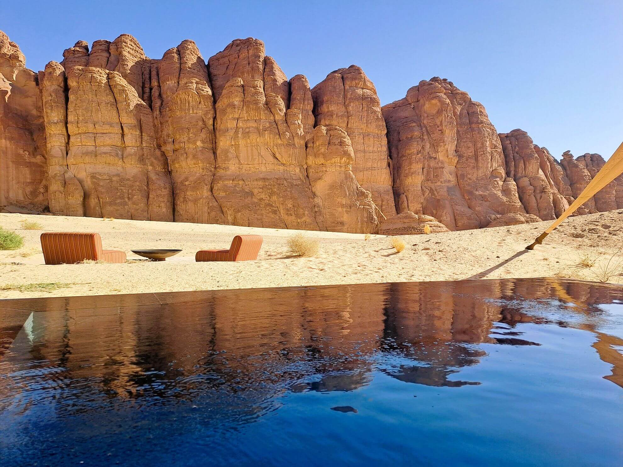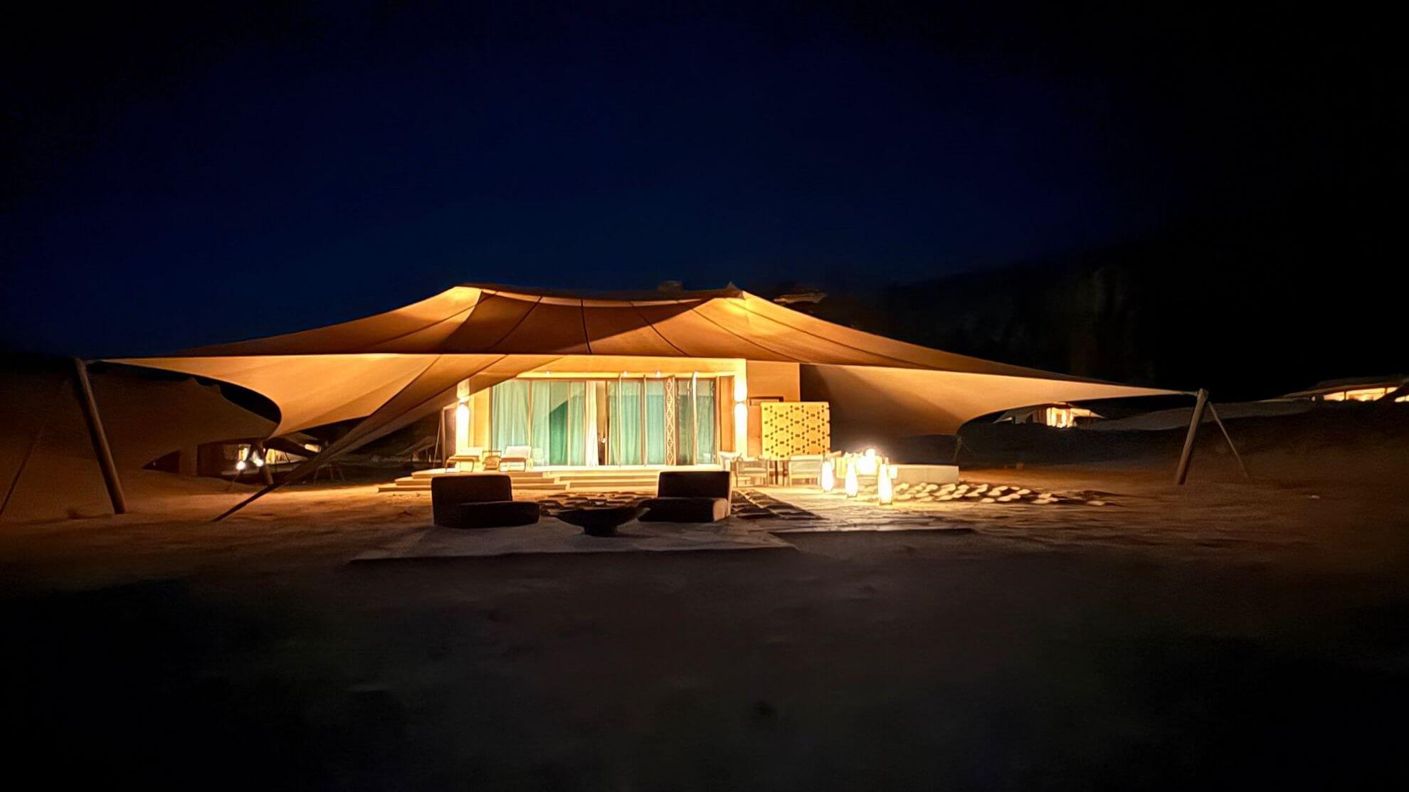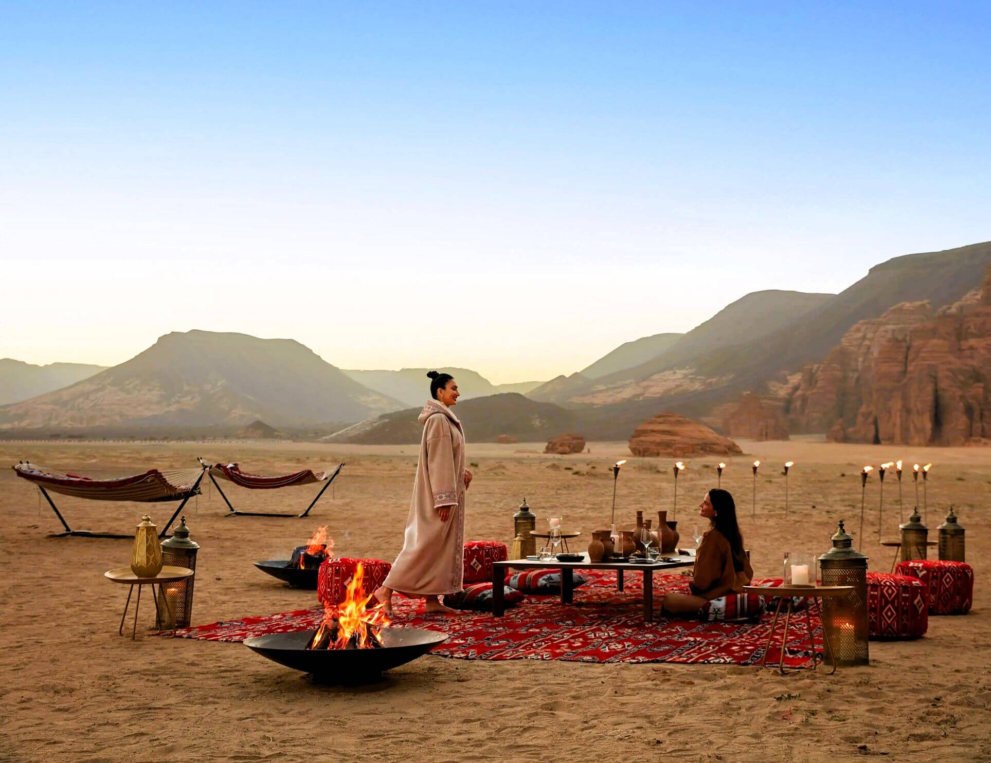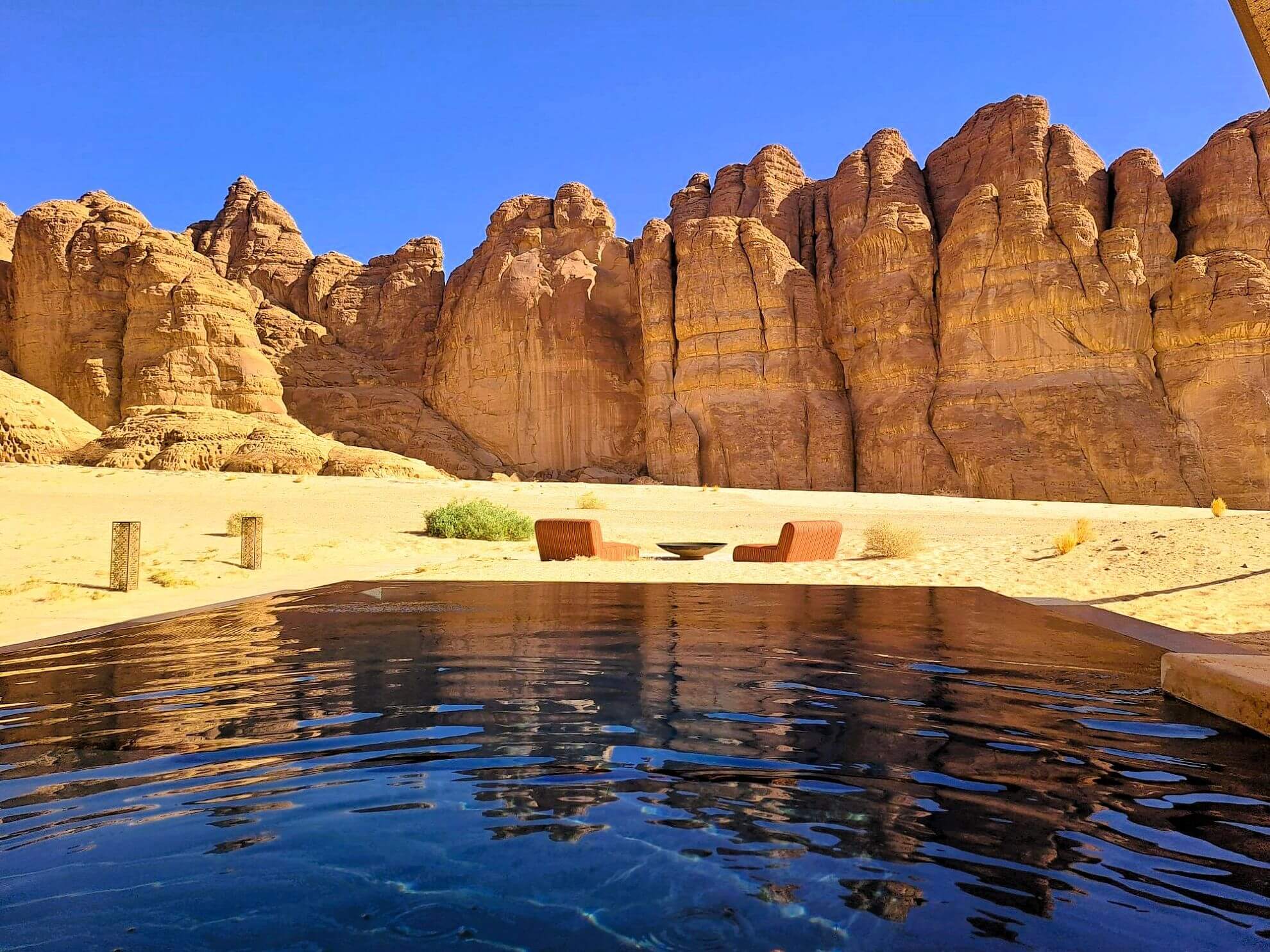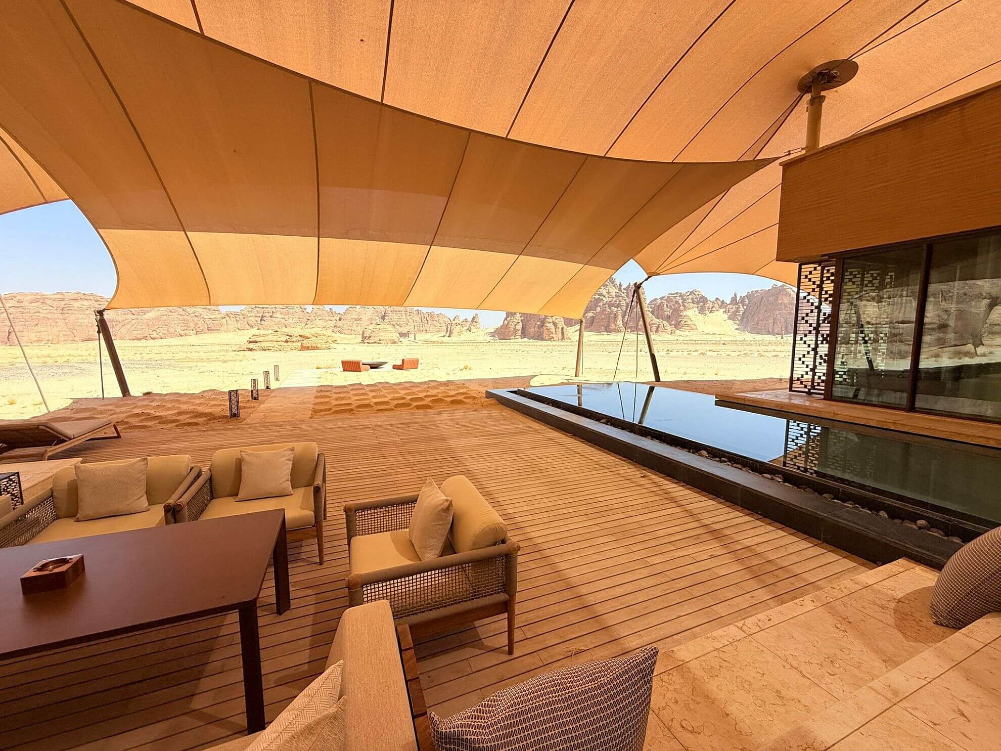 Údolí Ašar nedaleko Al Uly vypadá na první pohled při příletu stejně jako celé okolí, poušť a bohaté skalní útvary. Při příjezdu po zemi se ale začínají vynořovat střechy 47 velkolepých luxusních vil ve tvaru stanů, jejichž barva dokonale splývá s okolím, to je Banyan Tree. Architekti udělali vše proto, aby tento resort korespondoval s krajinou i historií. Na papír jim přitom bylo naservírováno celé údolí, přičemž od severní části resortu s ikonickým bazénem po recepci na konci jižním je to přes tři a půl kilometruy. Každý host se může kochat ve všudepřítomné vůni citronové trávy nekonečnou krásou skalních útvarů od ohniště či bazénu své vilky, kolem níž jsou navršeny písečné duny, což zajišťuje maximální soukromí. I proto do tohoto resortu zamířil např. slavný Ronaldo. Golfový vozík hosta dopraví k úžasnému přírodnímu kamennému bazénu mezi pískovcovými skalami (jen pro starší 16 let), k fata morgáně jménem Maraya, což je největší koncertní budova na světě složená z 9740 zrcadlových panelů, do lázní s medovými a kurkumovými procedurami i do obou skvělých restaurací. Harrat promlouvá k hostovi všemi smysly od nabídky mezze, mořských plodů po místní grilované speciality. Thajská restaurace Saffron je značkovou lodí hotelů Banyan po celém světě, její mistrovské kousky si host může zkusit uvařit během kurzů vaření.