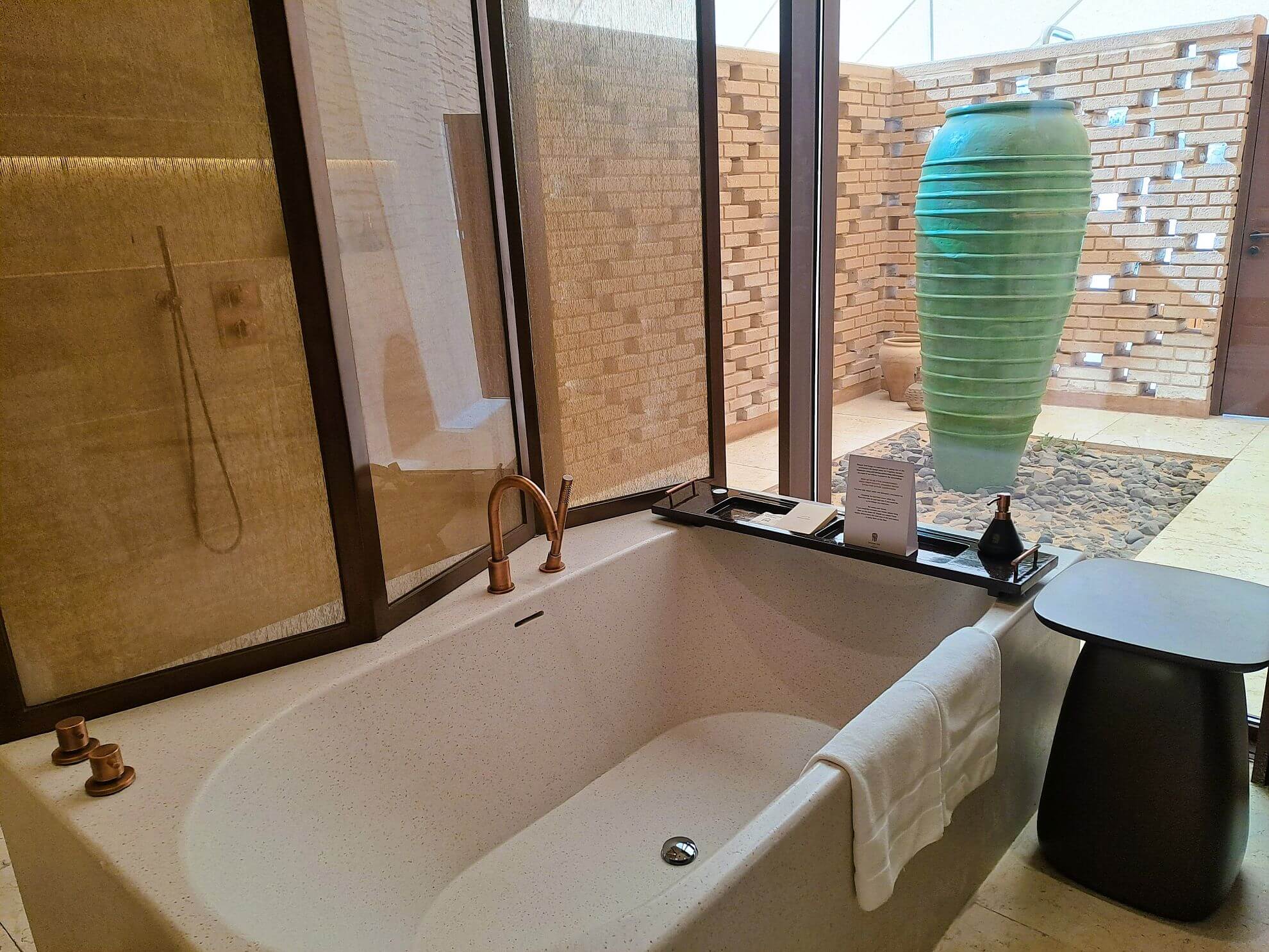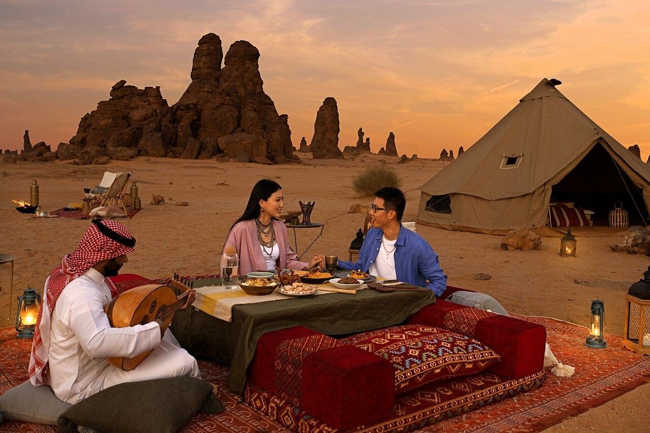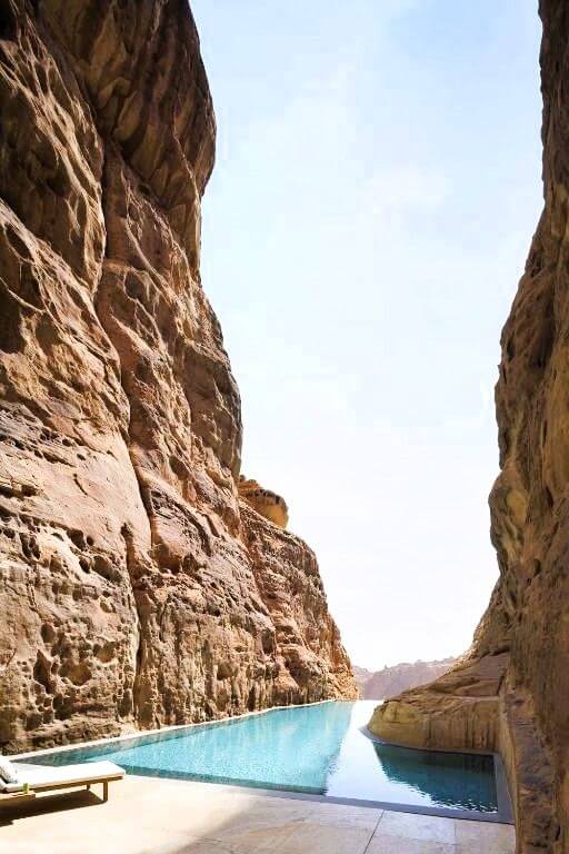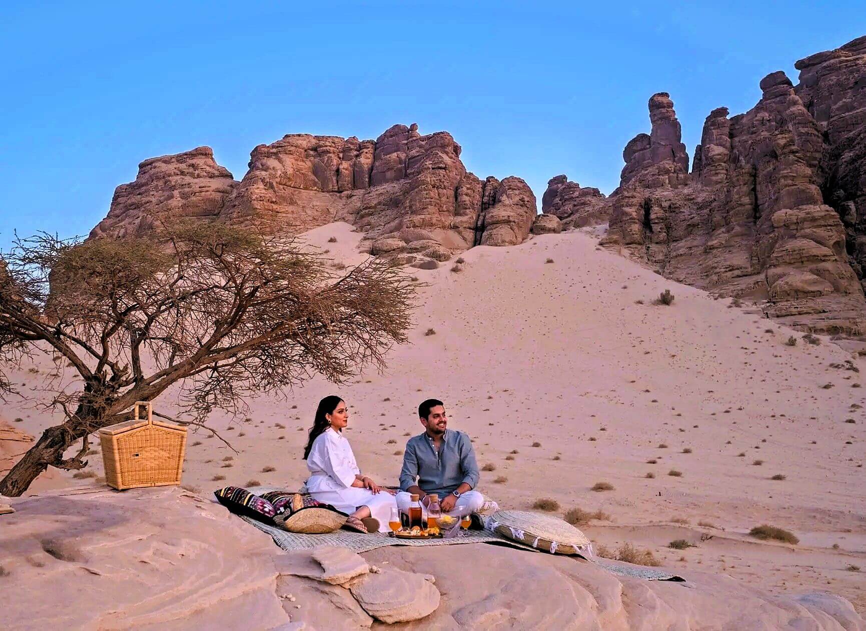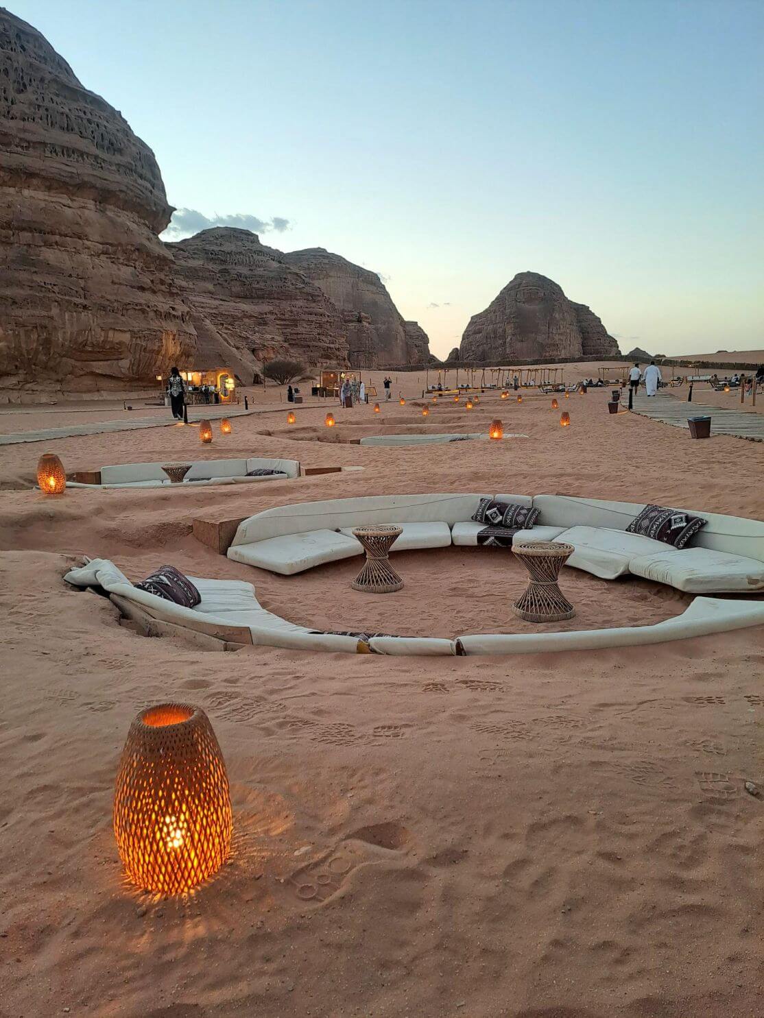 Údolí Ašar nedaleko Al Uly vypadá na první pohled při příletu stejně jako celé okolí, poušť a bohaté skalní útvary. Při příjezdu po zemi se ale začínají vynořovat střechy 47 velkolepých luxusních vil ve tvaru stanů, jejichž barva dokonale splývá s okolím, to je Banyan Tree. Architekti udělali vše proto, aby tento resort korespondoval s krajinou i historií. Na papír jim přitom bylo naservírováno celé údolí, přičemž od severní části resortu s ikonickým bazénem po recepci na konci jižním je to přes tři a půl kilometruy. Každý host se může kochat ve všudepřítomné vůni citronové trávy nekonečnou krásou skalních útvarů od ohniště či bazénu své vilky, kolem níž jsou navršeny písečné duny, což zajišťuje maximální soukromí. I proto do tohoto resortu zamířil např. slavný Ronaldo. Golfový vozík hosta dopraví k úžasnému přírodnímu kamennému bazénu mezi pískovcovými skalami (jen pro starší 16 let), k fata morgáně jménem Maraya, což je největší koncertní budova na světě složená z 9740 zrcadlových panelů, do lázní s medovými a kurkumovými procedurami i do obou skvělých restaurací. Harrat promlouvá k hostovi všemi smysly od nabídky mezze, mořských plodů po místní grilované speciality. Thajská restaurace Saffron je značkovou lodí hotelů Banyan po celém světě, její mistrovské kousky si host může zkusit uvařit během kurzů vaření.