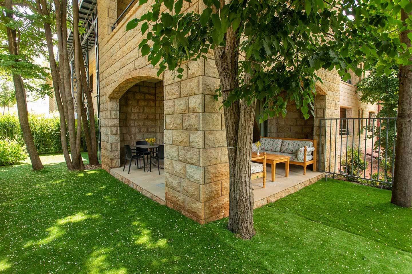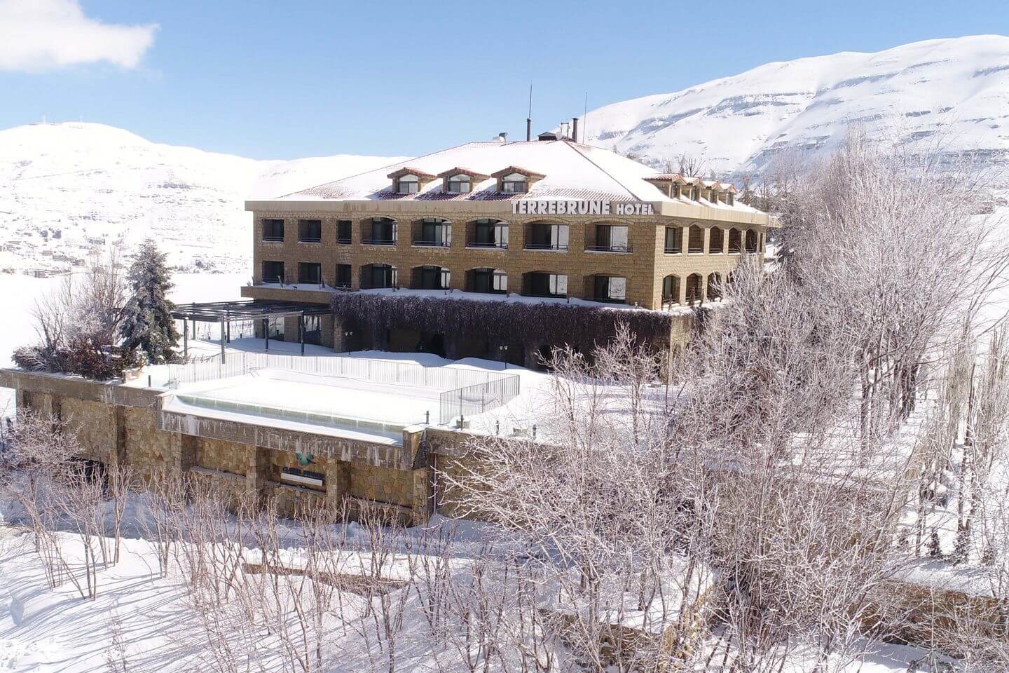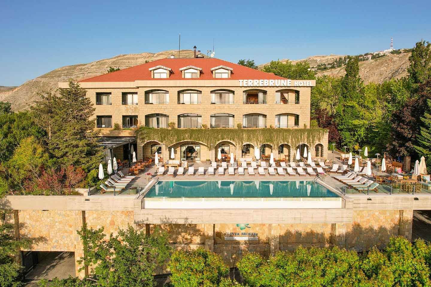 Hotel Terrebrune leží ve známém lyžařském středisku Mzaar v těsné blízkosti římských ruin Faqra, což hostům zajišťuje neobvyklý výhled nejen na hory, ale i na památku. Terrebrune je oblíbeným místem milovníků bílého sportu, rodinných oslav nebo firemních školení. Z hotelu je zajištěna doprava ke sjezdovce, která je vzdálena 5 kilometrů (8 minut jízdy), a také zpět dle potřeb klientů.