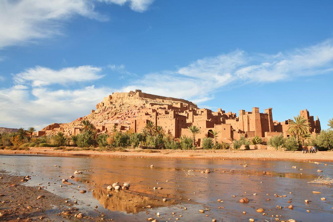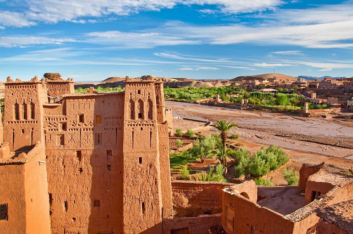 Tento náročnější výlet míří do jedné z nejatraktivnějších částí Maroka, které jsou velmi vyhledávány filmovými štáby. Cesta vede přes hory Vysokého Atlasu průsmykem Tizi n´Tichka ve výšce 2260 metry a lemuje ji množství malebných berberských vesniček na úbočích. Hlavním bodem programu je návštěva ksaru Ait BenHaddou, který je součástí seznamu Unesca a v němž se točily např. filmy Lawrence z Arábie nebo Gladiátor. Poznáme také město Ourzazate a kazby Taourirt a Tiffoultoute, které byly sídlem Glaoui - starého paši z Marakéše. Po obědě v místní restauraci následuje návrat, náročný výlet začíná již v 7,30 a předpokládaný příjezd zpět do Marakéše je v 19,00. Realizuje se od dvou osob, v ceně je oběd a je třeba počítat s tím, že během dne urazíte 400 km.