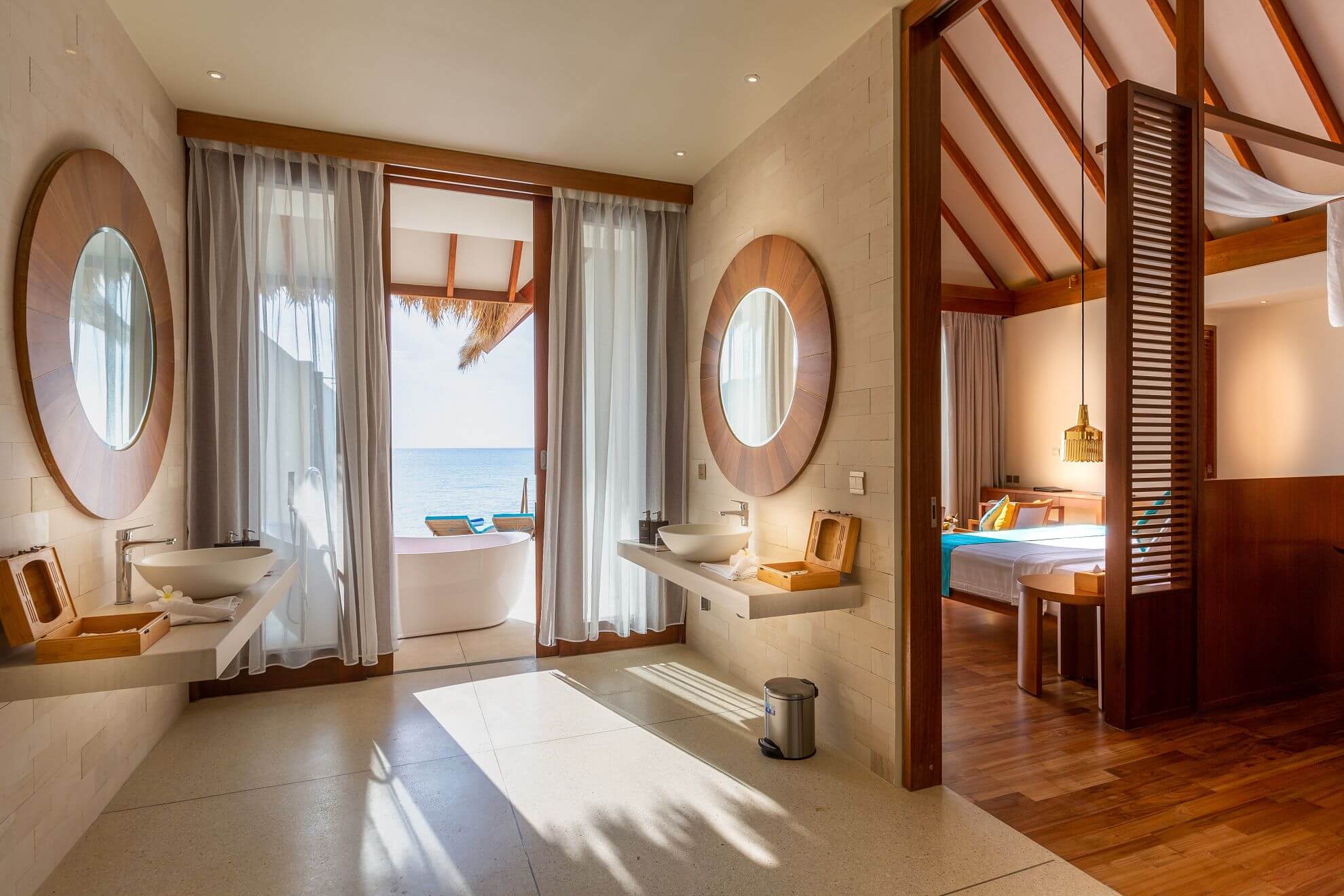 Nejlevnější typ vilek nad mořem je umístěn na jihozápadě nad lagunou a klienti mají kromě prostoru o 150 metrech čtverečních k dispozici hamaku zavěšenou nad mořem.