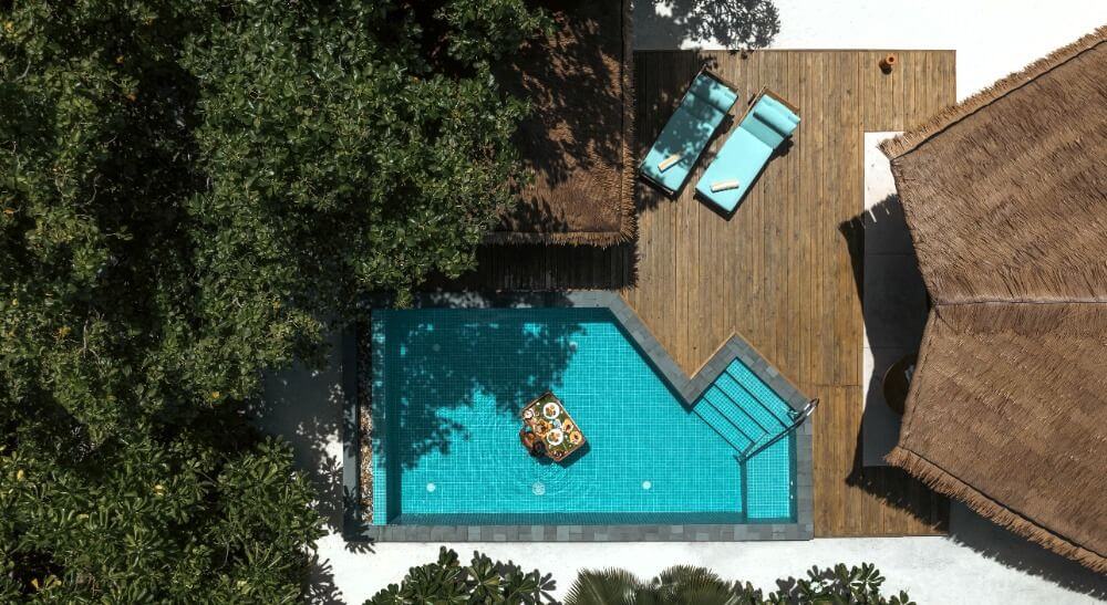 Tento typ vilky je možný také ve verzi s bazénem, v takovém případě si hosté užijí východ slunce a jasné polední slunce. Další verzí je plážová vilka s bazénem a vířivkou.