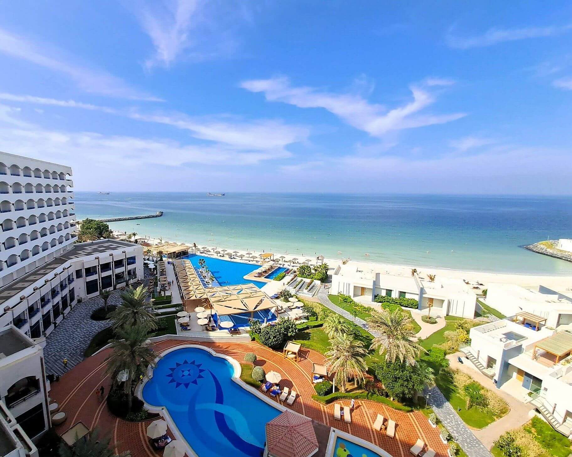 This very popular beach hotel is located in Ajman, the smallest of the seven emirates, just a 30-minute drive from Dubai Airport. It has standard air-conditioned rooms with balconies and sea views, as well as a range of more luxurious suites. Guests staying in these suites have free use of in-room internet, minibar, dry cleaning and can also benefit from a discount on spa services. The hotel has its private 500-meter long private beach with white sand and shallow access to the water. Sun loungers with parasols and towels are included in the room price and so are extensive sports facilities and a spa area. All guests enjoy free internet access in the business center, as well as several daily shuttles to Sharjah and Dubai.
